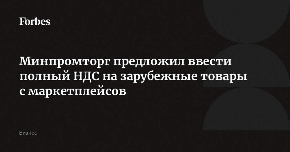 Минпромторг предложил ввести полный НДС на зарубежные товары с маркетплейсов с 1 января 2027 года. Глава думского комитета по промышленной политике Алиханов отметил, что министерство прорабатывает разные варианты для «установления более справедливых условий» для российских и иностранных продавцов.... Далее