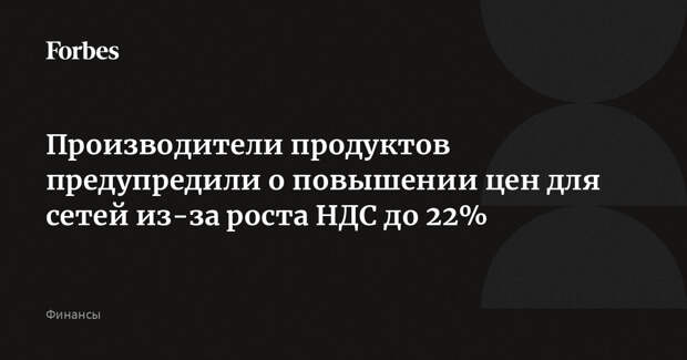 Производители ряда продуктов питания предупредили ретейлеров об увеличении закупочных цен на свою продукцию, объяснив такое решение повышением НДС с 20% до 22%. Как сообщили «Коммерсантъ» и «Фонтанка», соответствующие письма направили розничным сетям «Орими Трэйд» (производитель чая Greenfield, Tess, «Принцесса Нури», кофе Jardin и «Жокей»), «Лотте КФ Рус» (Choco Pie, Amante, Chic Choc) и другие компании.