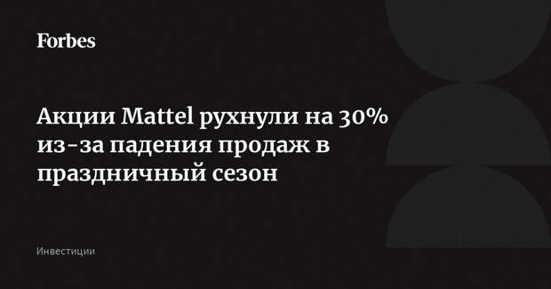 Mattel, производитель кукол Barbie и машинок Hot Wheels, разочаровал рынок своими квартальными финансовыми результатами и слабым прогнозом на 2026 год. Из-за низких продаж в рождественские праздники компании пришлось увеличить скидки на свои игрушки, что повлияло на прибыль. Акции Mattel обвалились на 30% на премаркете в США