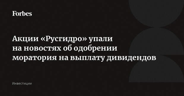 Мораторий «Русгидро» на выплату дивидендов до 2029 года был одобрен на совещании по энергетике в числе прочих мер, пишет «Интерфакс» со ссылкой на источник. Вице-премьеры и менеджмент компании неоднократно говорили о подобных планах, указывая на высокую долговую нагрузку. Акции «Русгидро» на Мосбирже падают более чем на 3%