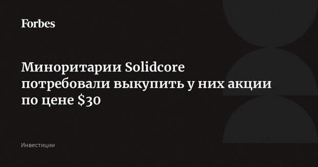 Миноритарии Solidcore обратились к золотодобытчику с предложением выкупить у них акции по цене $30 за штуку. Если такого выкупа не будет, они планируют оспорить продажу российского АО «Полиметал» и переезд компании в юрисдикцию Казахстана. По версии миноритарных акционеров Solidcore, цены выкупа их акций после делистинга с Мосбиржи многократно занижены