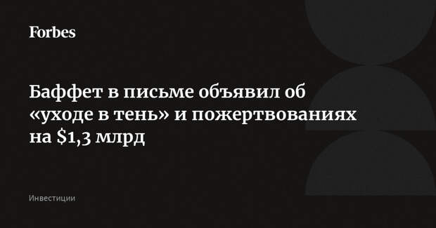 95-летний миллиардер-инвестор Уоррен Баффетт 10 ноября обратился с письмом к акционерам Berkshire Hathaway. Баффетт готовится покинуть пост CEO к концу 2025 года, сохранив роль председателя совета директоров. В своем послании он сообщил, что перестанет писать ежегодные письма, сопровождающие годовые отчеты компании, и выступать на собраниях акционеров, но будет обращаться к ним с посланиями к Дню Благодарения, чтобы рассказывать о своих благотворительных пожертвованиях
