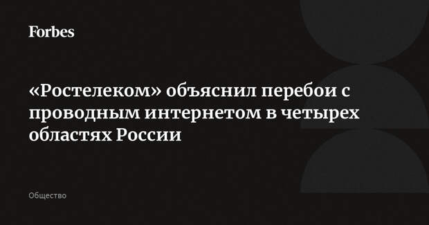«Ростелеком» объяснил временное отключение проводного интернета в четырех областях Центральной России — в компании заявили, что сбои были связаны с повреждением третьими лицами магистрального канала в Ярославской области, сообщают «РИА Новости». В компании добавили, что сейчас все повреждения устранены.