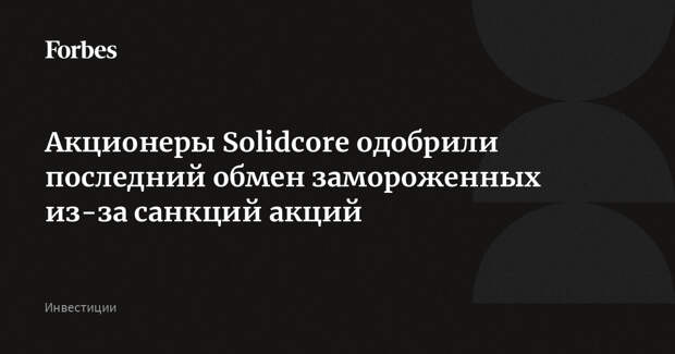 Solidcore проведет окончательный обмен замороженных из-за санкций акций: решение одобрили акционеры золотодобытчиков. Для держателей бумаг компании это будет последняя возможность обменять учитываемые в системе Euroclear акции Solidcore на новые, выпущенные на бирже в Астане. После этого Solidcore планирует провести принудительный выкуп акций