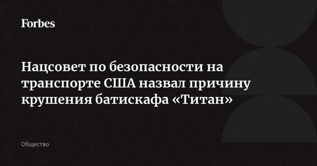 Причиной крушения батискафа «Титан» при погружении к обломкам «Титаника» в июне 2023 года стали ошибки при проектировании и необнаруженные повреждения, выяснил Национальный совет по безопасности на транспорте США. Там отметили, что подводный аппарат «не соответствовал необходимым требованиям к прочности и долговечности»