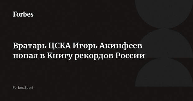 Вратарь ЦСКА Игорь Акинфеев попал в Книгу рекордов России за самую продолжительную непрерывную спортивную карьеру профессионального футболиста в одном клубе. В системе ЦСКА голкипер находится более 35 лет и по-прежнему защищает ворота основной команды