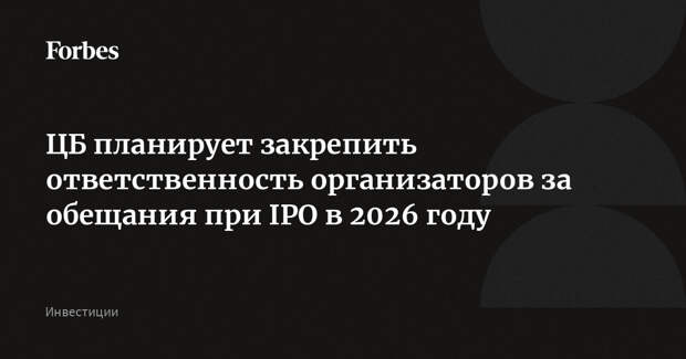 ЦБ намерен ужесточить правила листинга в 2026 году, закрепив за организаторами IPO ответственность за информацию в проспекте ценных бумаг. НАУФОР ранее выступила против такого шага, отметив, что организаторы не могут оценить все детали и учесть влияние всех факторов на бизнес эмитента