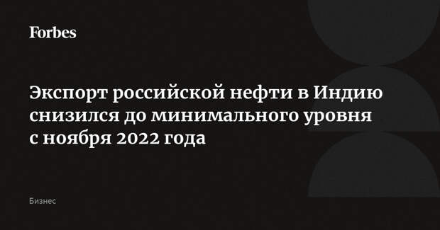 Экспорт российской нефти в Индию в декабре снизился до минимального уровня с ноября 2022 года — 37 млн баррелей или 1,2 млн баррелей в сутки, пишет Bloomberg. На фоне сокращения поставок энергоносителей за рубеж как минимум 11 танкеров с российскими углеводородами простаивают между Оманом и островом Сокотра либо в Аравийском море, отметило агентство.