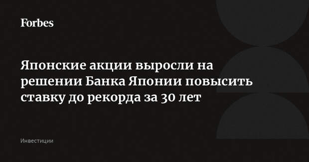 Банк Японии поднял ключевую ставку до 0,75% — это самый высокий уровень за последние 30 лет. Раньше Япония использовала отрицательную ставку, борясь с низкой инфляцией, но в 2024 году отступила от этой политики, перейдя к повышению. На решении японского центробанка рынок акций вырос на 1%, иена ослабла по отношению к доллару США, а доходность японских гособлигаций достигла 2% впервые почти за 20 лет