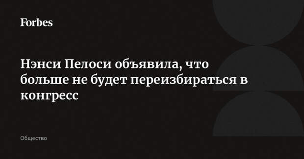 Первая женщина в истории, занявшая пост спикера Палаты представителей США, 85-летняя Нэнси Пелоси заявила, что после окончания этого срока в конгрессе не будет переизбираться на новый. Полномочия Пелоси истекают в 2027 году. Она представляла Калифорнию в Конгрессе на протяжении почти 40 лет