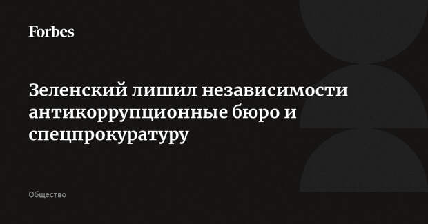 Украинский парламент принял, а Зеленский 22 июля подписал закон, который лишает самостоятельности антикоррупционные бюро и специализированную прокуратуру и делает их зависимыми от решений генпрокурора, который назначается президентом. В Киеве у офиса президента Украины в тот же день прошла крупнейшая за более чем три года акция протеста, передает WSJ