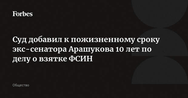 Суд в Оренбурге приговорил Рауфа Арашукова, уже отбывающего пожизненное заключение, к 10 годам колонии. В 2022 году бывший сенатор был признал виновным по делу о создании ОПГ и организации убийства. А сейчас — по делу о взятке в 6 млн рублей за создание «привилегированных условий отбывания наказания» в ИК-6 «Черный дельфин».