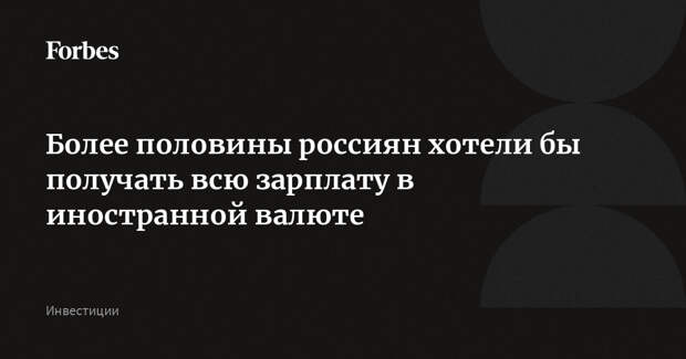 Большинство граждан России признались, что хотели бы получать всю свою зарплату в иностранной валюте — долларах США или евро. Третьей по популярности валютой стал юань, выяснила платформа Stape. В число редко называемых вариантов попали британский фунт стерлингов, швейцарский франк, криптовалюта и рубль