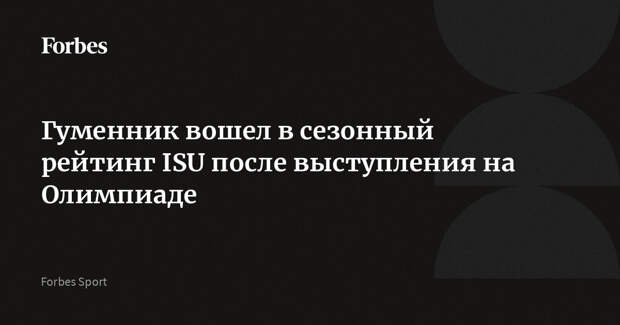 Российский фигурист Петр Гуменник вошел в рейтинг Международного союза конькобежцев (ISU) сезона-2025/26 после выступления на Олимпийских играх. Он занимает 92-е место с 709 очками. Гуменник не выступал на международных турнирах с 2021 года, на Олимпиаде он занял шестое место