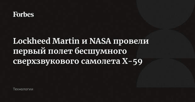 Lockheed Martin совместно с NASA успешно провела первый полет бесшумного сверхзвукового самолета X-59. Как сообщили в компании, экспериментальное воздушное судно вылетело с предприятия в Палмдейле и приземлилось недалеко от Летно-исследовательского центра NASA имени Армстронга в Эдвардсе (обе локации расположены в штате Калифорния).