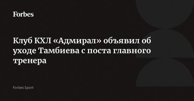 Клуб Континентальной хоккейной лиги (КХЛ) «Адмирал» объявил об уходе Леонида Тамбиева с поста главного тренера. Соглашение с 55-летним специалистом расторгнуто из-за неудовлетворительных результатов команды. В текущем сезоне «Адмирал» занимает предпоследнее, 10-е место в турнирной таблице Восточной конференции, набрав 28 очков в 32 матчах