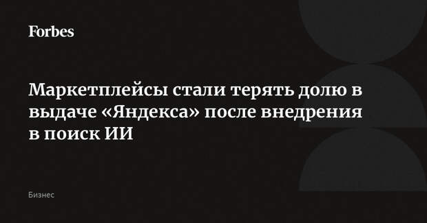 Маркетплейсы стали терять долю в выдаче «Яндекса» после внедрения в поиск товаров искусственного интеллекта, пишет «Коммерсантъ». По данным участников рынка и экспертов, из-за популяризации маркетплейсов «Яндекс» мог потерять до 25–30% трафика, поэтому с помощью выдачи малых сайтов поисковик старается вернуть пользователей.
