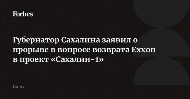 Указ, подписанный Путиным и позволяющий ExxonMobil вернуть долю в нефтегазовом проекте «Сахалин-1», можно считать прорывом, заявил губернатор Сахалина Лимаренко. Он заверил, что если президенты двух стран договорятся и Exxon вернется в Россию, то сотрудничество, «зародившееся пару десятилетий тому назад», продолжится