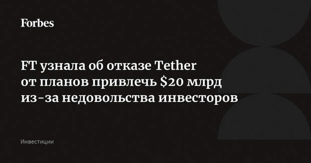 Tether изменила свои планы по раунду финансирования, пишет FT: если раньше эмитент крупнейшего стейблкоина рассчитывал привлечь до $20 млрд, то теперь нацелен на $5 млрд. Инвесторов не устроила оценка Tether в $500 млрд, рассказали источники. Глава компании Паоло Ардоино считает, что она достойна той же оценки, что и «убыточные» разработчики ИИ-моделей