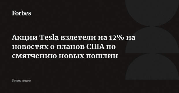 Акции Tesla взлетели на 12%, что стало их самым крупным приростом после победы Трампа на выборах в США. Росту котировок компании Илона Маска способствовали новости о том, что взаимные импортные пошлины, которые Трамп намерен ввести со 2 апреля, будут не такими масштабными, как он угрожал. К тому же инвесторы воспользовались возможностью купить акции Tesla на падении их стоимости, отмечает Reuters