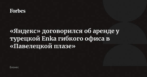 «Яндекс» арендует у турецкой Enka 600 рабочих мест в гибком офисе Flexity в бизнес-центре рядом с Павелецким вокзалом, выяснили «Ведомости». Сделка станет одной из крупнейших в 2025 году на рынке гибких офисов, отмечают эксперты. Аренда в «Павелецкой плазе» обойдется компании в 40–48 млн рублей в месяц, подсчитали они