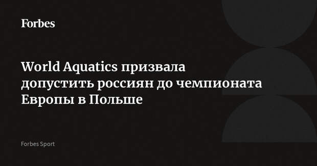 Международная федерация плавания (World Aquatics) призвала устранить политические ограничения, не позволяющие российским спортсменам выступить на чемпионате Европы в Польше, сообщил глава Федерации водных видов спорта России Дмитрий Мазепин. Турнир пройдет в Люблине с 2 по 7 декабря
