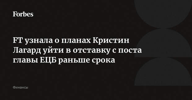 Глава Европейского центрального банка Кристин Лагард планирует уйти в отставку до окончания восьмилетнего срока своих полномочий в октябре 2027 года, сообщил источник FT. Тем самым она хочет дать возможность уходящему в 2027 году с поста президенту Франции Макрону и канцлеру Германии Фридриху Мерцу найти нового главу ЕЦБ, объяснил он